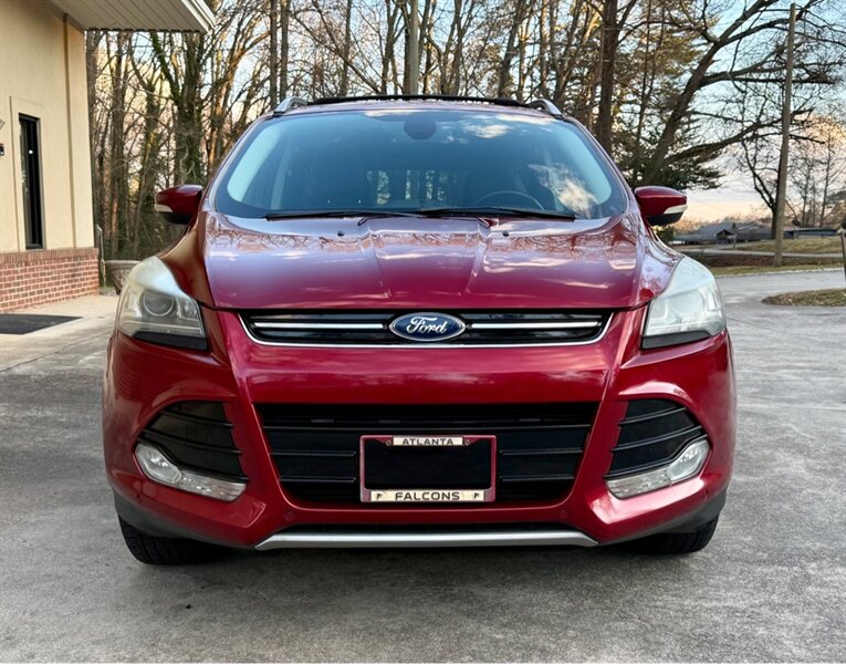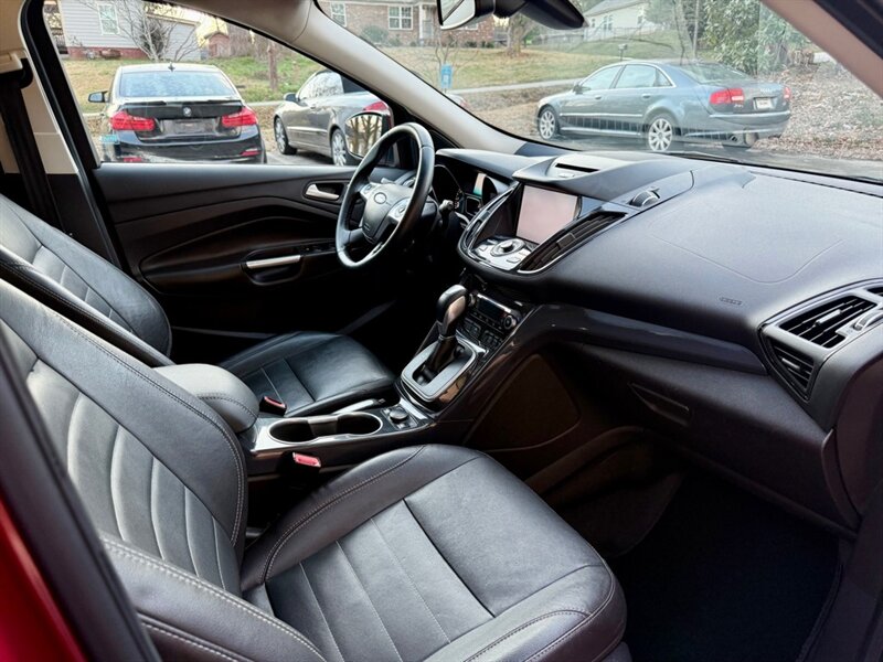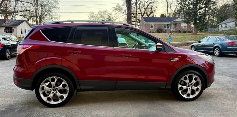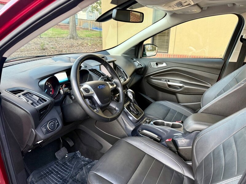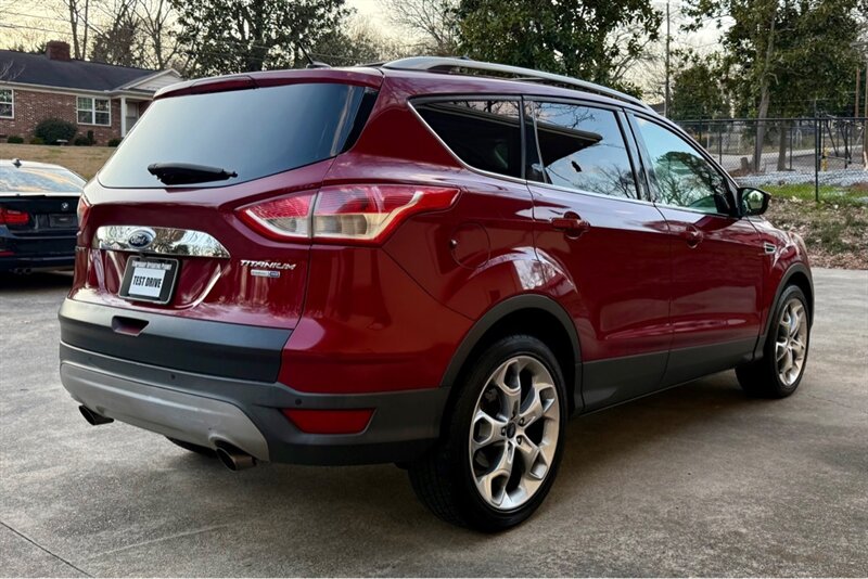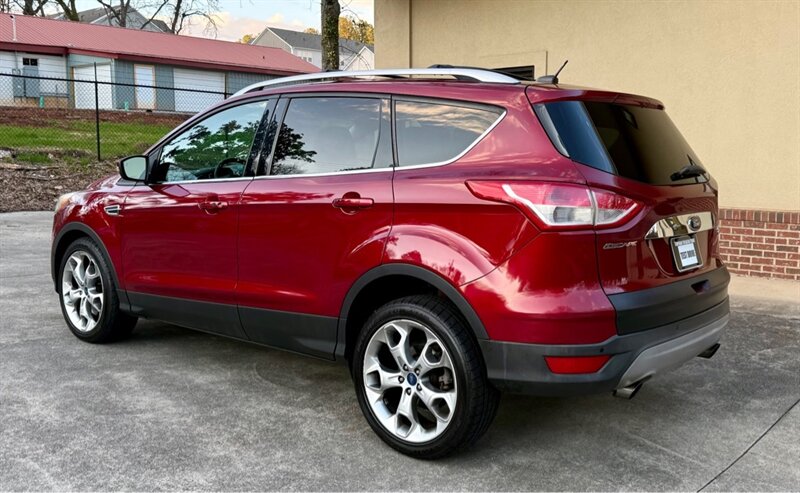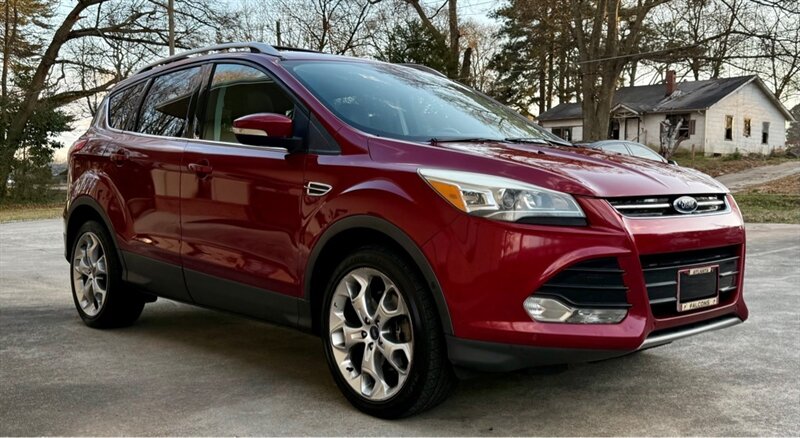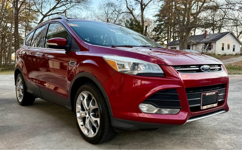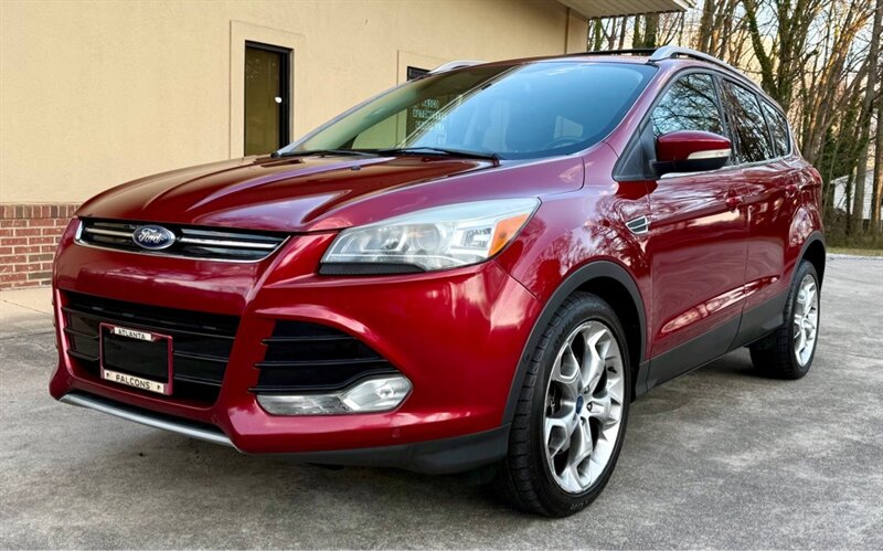 2014 Ford Escape Titanium in Red with Black leather interior. Powered by a 2.0L EcoBoost turbo I4 (240 hp, 270 lb-ft) mated to a smooth 6-speed automatic, this Escape has under 96,000 miles (avg. <8,000 miles/year) and is in excellent overall condition. EPA fuel economy is 21 MPG city / 28 MPG highway.