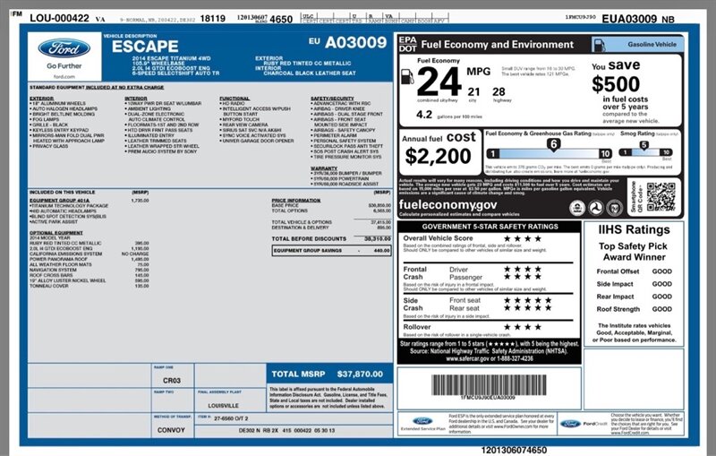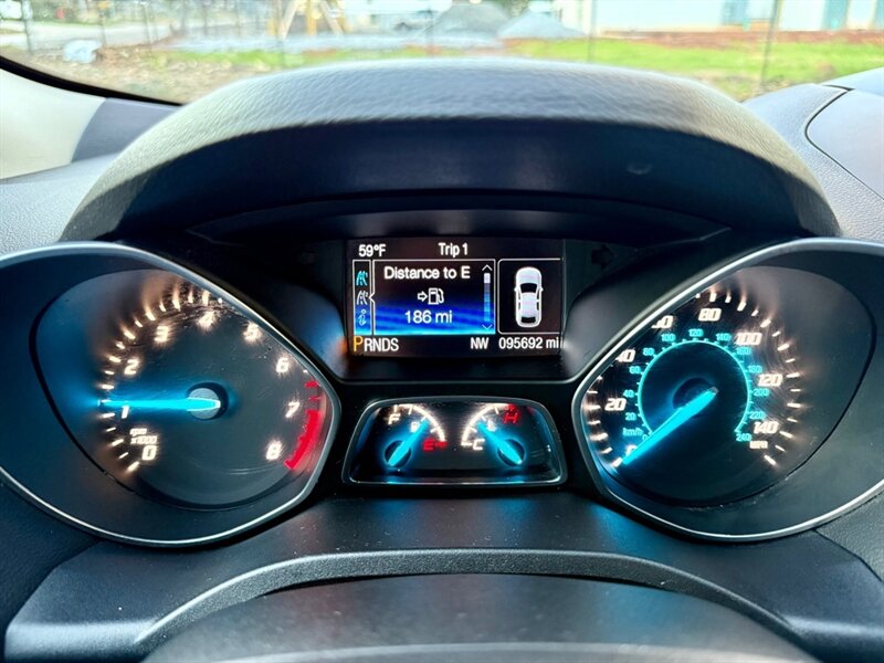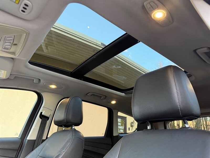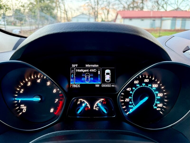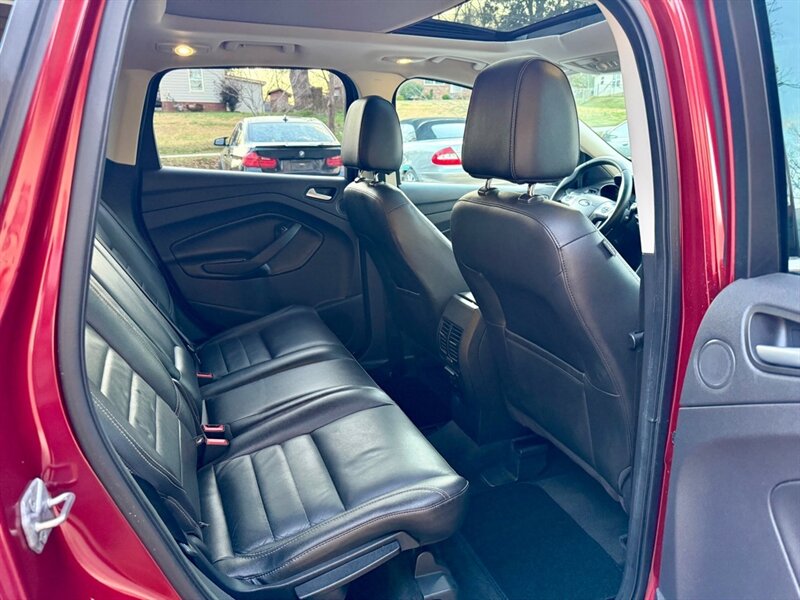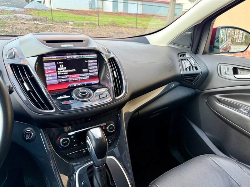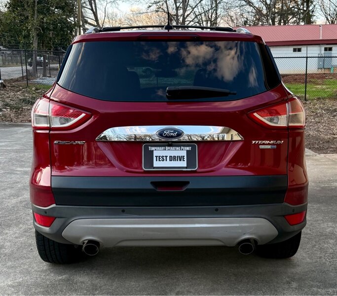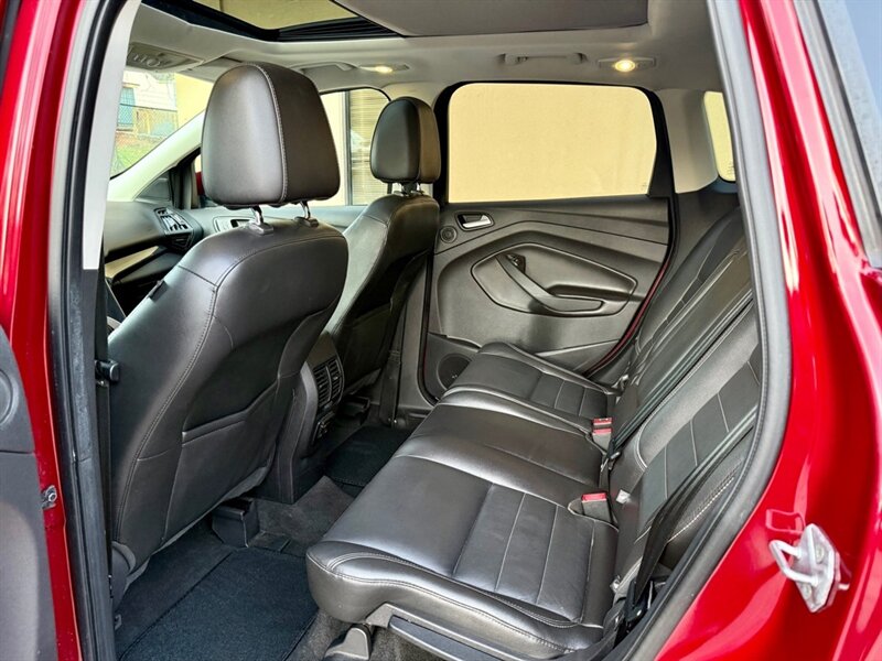 2014 Ford Escape Titanium in Red with Black leather interior. Powered by a 2.0L EcoBoost turbo I4 (240 hp, 270 lb-ft) mated to a smooth 6-speed automatic, this Escape has under 96,000 miles (avg. <8,000 miles/year) and is in excellent overall condition. EPA fuel economy is 21 MPG city / 28 MPG highway.