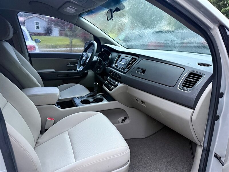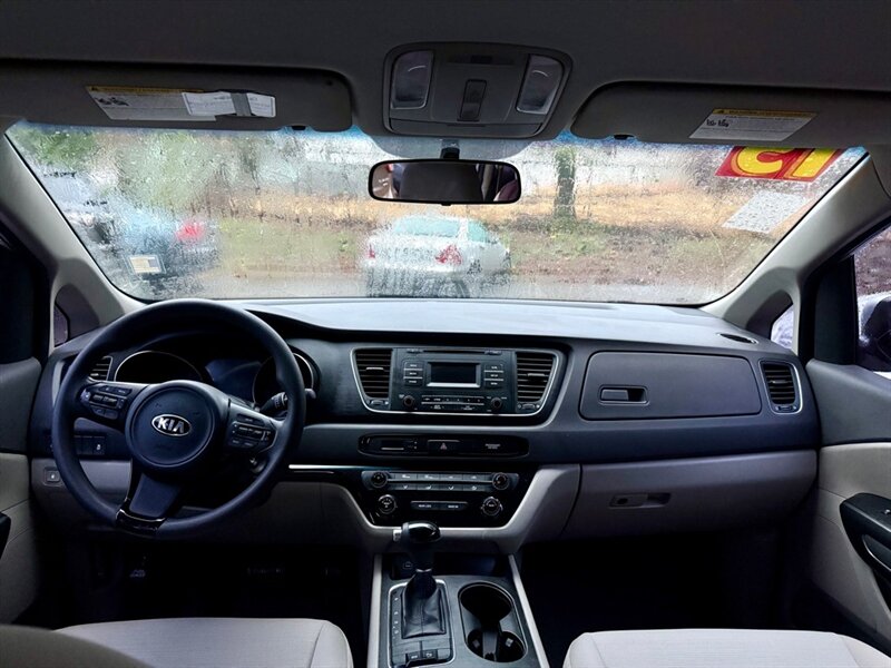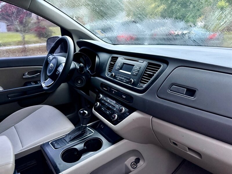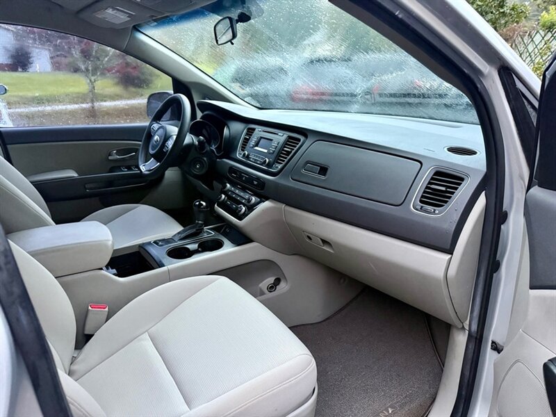 The 2015 Kia Sedona L is a versatile and spacious minivan, perfect for families or those needing extra room. Powered by a robust 3.3L V6 engine generating 276 horsepower and 248 lb-ft of torque, it delivers a responsive driving experience. The exterior is finished in a sleek Bright Silver, while the interior features comfortable gray cloth seating. This model includes factory-default features such as a 7-inch touchscreen display, Bluetooth connectivity, a rearview camera, and a six-speaker audio system for an enjoyable ride. Additionally, it offers ample cargo space and seating for up to eight passengers. With fuel efficiency rated at 18 MPG in the city and 24 MPG on the highway, this Sedona L is both practical and economical. Overall, this vehicle is in excellent condition, ready to meet your driving needs.