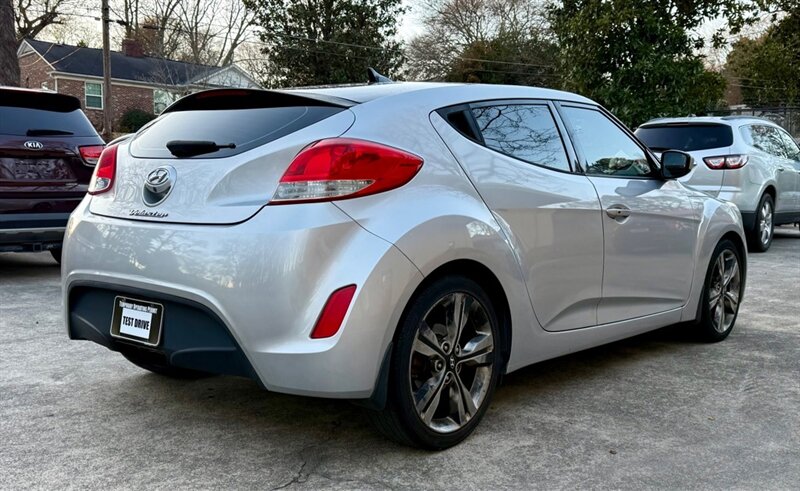 Bright Silver 2017 Hyundai Veloster Value Edition 3-door in excellent overall condition, powered by a peppy 1.6L I4 with 132 hp and 120 lb-ft (27 MPG city / 34 MPG highway). Factory-equipped for everyday driving enjoyment, it features a Black cloth interior, split-fold rear seat, air conditioning, power windows/locks/mirrors and remote keyless entry for convenience. Tech and comfort include Bluetooth hands-free and audio streaming, steering-wheel audio and phone controls, USB/AUX inputs, AM/FM audio with satellite capability and a rearview camera. Safety and driving aids from the factory include ABS, multiple airbags, stability/traction control and cruise control — all wrapped up on stylish alloy wheels.