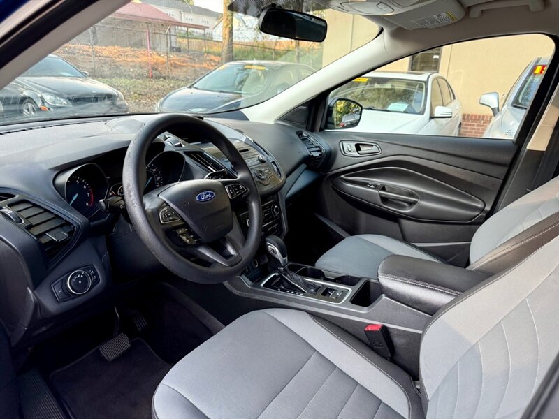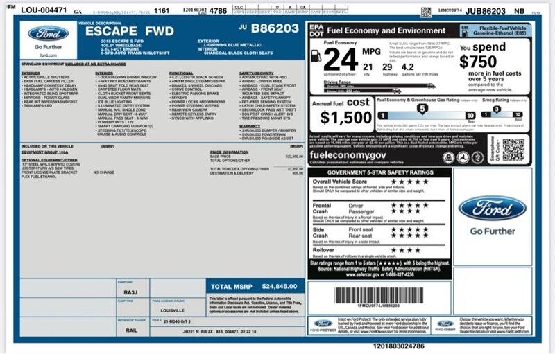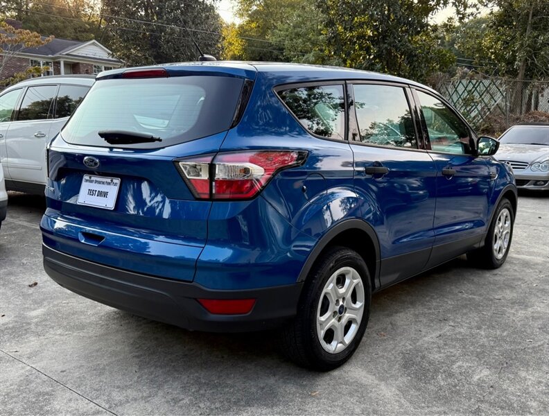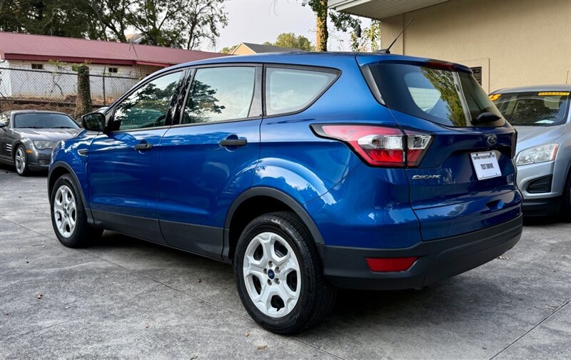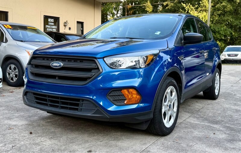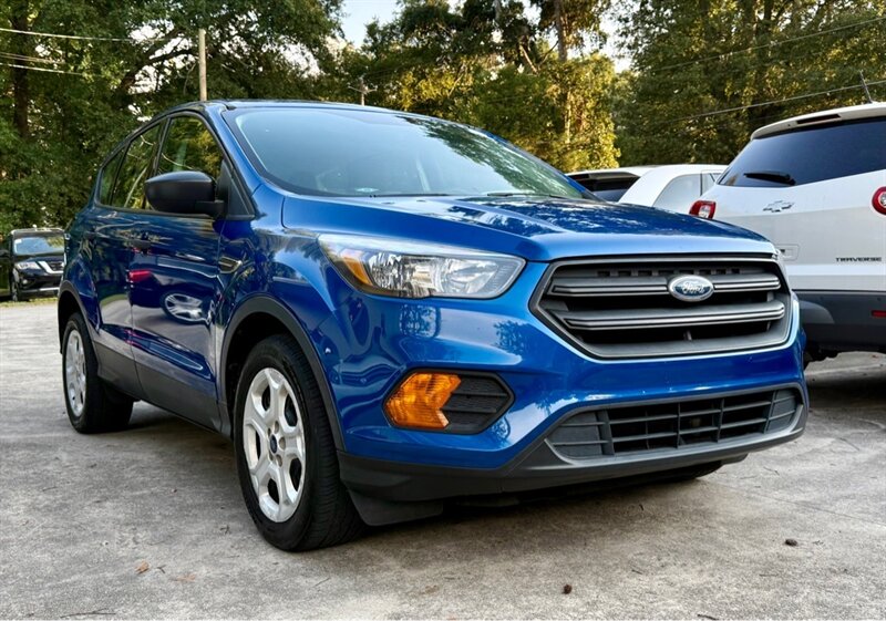 The factory default features of the 2018 Ford Escape S include a range of amenities designed to enhance comfort, convenience, and safety. Step inside the spacious interior finished in elegant Gray, where you'll find supportive seats, a user-friendly infotainment system, air conditioning, power windows, and keyless entry. The Blue exterior exudes style and sophistication, making a statement on the road wherever you go.